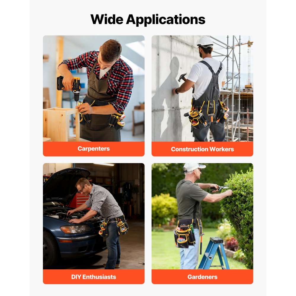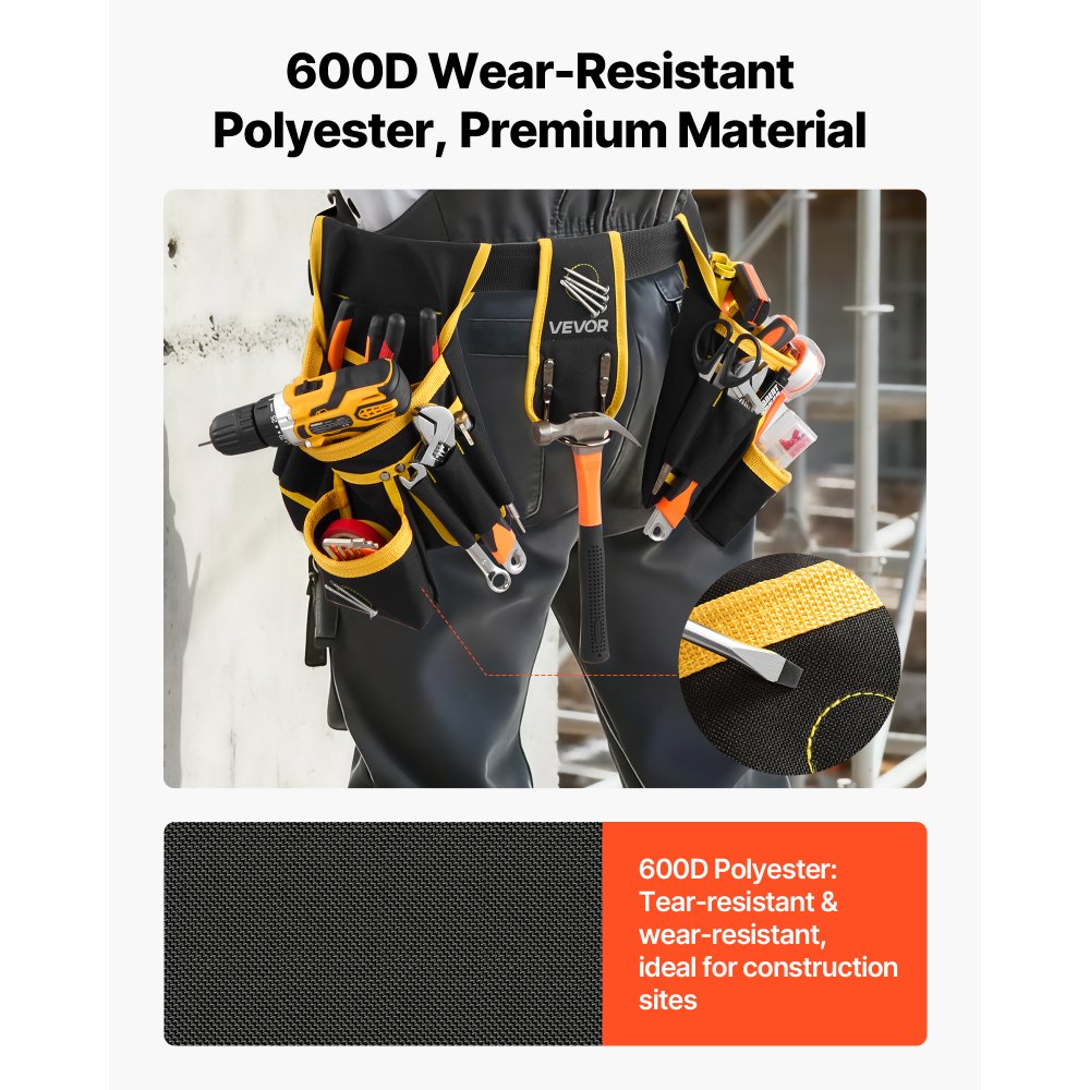 Αποθήκευση 28 τσεπών: Η ζώνη εργαλείων μας διαθέτει 28 τσέπες και 3 ζώνες μαγνητών για να οργανώνετε σφυριά, κατσαβίδια, πένσες, μετροταινίες, καρφιά. Βρείτε γρήγορα εργαλεία, εξοικονομώντας χρόνο και ενισχύοντας την αποδοτικότητα - ιδανική για ξυλουργικές εργασίες, ηλεκτρολογικές εργασίες και εργοτάξια. Ρυθμιζόμενη μέση: Αυτή η ζώνη εργαλείων ξυλουργού υποστηρίζει ρύθμιση μέσης 31–48 ιντσών με ανθεκτική αγκράφα και συρόμενο ρυθμιστή για άνετη εφαρμογή. Προσαρμόζεται εύκολα σε μπουφάν ή ρούχα εργασίας, διατηρώντας τη ζώνη σταθερή κατά το σκύψιμο, την αναρρίχηση ή την κίνηση. Μαγνητική λειτουργία: Το πάνω μέρος της θήκης σφυριού και το μπροστινό μέρος και των δύο θηκών διαθέτουν μαγνήτες για τη συγκράτηση βιδών, καρφιών και μικρών εξαρτημάτων. Αποκτήστε πρόσβαση σε εργαλεία ή εξαρτήματα με το ένα χέρι ακόμα και σε μεγάλους ή στενούς χώρους, διατηρώντας την εργασία ομαλή, ασφαλή και αποτελεσματική. Ανθεκτικό στην τριβή και το σχίσιμο: Με ενισχυμένο πολυεστέρα 600D με διπλές ραφές και δεμένες άκρες, η ζώνη εργαλείων Framers μας αντιστέκεται στη φθορά, το σχίσιμο, το κρέμασμα και το τσαλάκωμα ακόμα και κάτω από βαριά εργαλεία, με πλήρες φορτίο ή σε κατασκευές. Κατασκευασμένο για επαγγελματίες DIY. Ευέλικτη χρήση: Ιδανική για ξυλουργούς, ηλεκτρολόγους, εργάτες οικοδομών και ερασιτέχνες, αυτή η ζώνη εργαλείων κατασκευών διατηρεί τα εργαλεία σας οργανωμένα και χωρίς χέρια. Κατάλληλη για βαριές εργασίες ή επισκευές στο σπίτι. Μοναδική ζώνη εργαλείων για άνδρες, πατέρες και συζύγους.