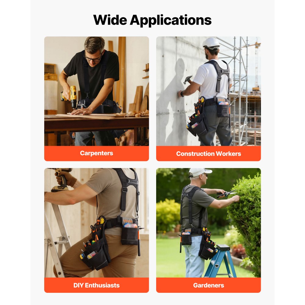 Αποθήκευση με 19 τσέπες: Η ζώνη εργαλείων μας διαθέτει 19 τσέπες για να οργανώνετε σφυριά, κατσαβίδια, πένσες, μετροταινίες και καρφιά. Βρείτε γρήγορα εργαλεία, εξοικονομώντας χρόνο και ενισχύοντας την αποδοτικότητα—ιδανικό για ξυλουργικές εργασίες, ηλεκτρολογικές εργασίες και εργοτάξια. Ρυθμιζόμενη μέση: Αυτή η ζώνη εργαλείων ξυλουργού υποστηρίζει ρύθμιση μέσης 31–51 ίντσες με ανθεκτική αγκράφα και συρόμενο ρυθμιστή για άνετη εφαρμογή. Προσαρμόζεται εύκολα σε μπουφάν ή ρούχα εργασίας, διατηρώντας τη ζώνη σταθερή κατά το σκύψιμο, την αναρρίχηση ή την κίνηση. Εργονομική και άνετη μέση: Η φαρδιά, επενδεδυμένη ζώνη εργαλείων κατανέμει ομοιόμορφα το βάρος και μειώνει την καταπόνηση. Παραμένει ασφαλής και άνετη κατά τη διάρκεια μεγάλης, έντονης εργασίας, αποφεύγοντας τη συστολή και την κόπωση, βοηθώντας τους εργαζομένους να συγκεντρωθούν και ενισχύοντας την αποδοτικότητα. Ανθεκτικό στην τριβή και το σχίσιμο: Με ενισχυμένο πολυεστέρα 600D με διπλές ραφές και δεμένες άκρες, η ζώνη εργαλείων Framers μας αντιστέκεται στη φθορά, το σχίσιμο, το κρέμασμα και το τσαλάκωμα ακόμα και κάτω από βαριά εργαλεία, με πλήρες φορτίο ή σε κατασκευές. Κατασκευασμένο για επαγγελματίες και ερασιτέχνες. Ευέλικτη χρήση: Ιδανική για ξυλουργούς, ηλεκτρολόγους, εργάτες οικοδομών και ερασιτέχνες, αυτή η ζώνη εργαλείων κατασκευών διατηρεί τα εργαλεία σας οργανωμένα και χωρίς χέρια. Κατάλληλη για βαριές εργασίες ή επισκευές στο σπίτι, προσφέρει αποτελεσματική, ολοκληρωμένη λειτουργικότητα.